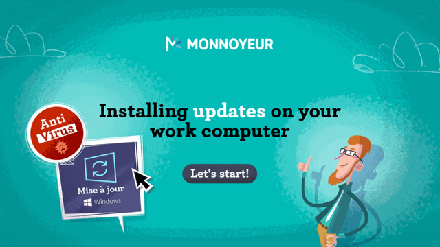Each module consists of 4 steps: 1/ an Introduction which presents a very concrete risk situation, 2/ a multiple choice question which asks the user to choose the best option, 3/ a Debrief which sets out the dangers involved as well as the good practices to adopt and 4/ a Conclusion in the form of a summary of the good practices